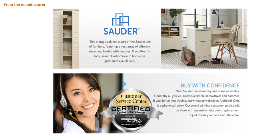 Assembled measurements are 35.43 Inch wide by 16.75 Inch deep by 61 Inch tall; limited 5-year manufacturer warranty