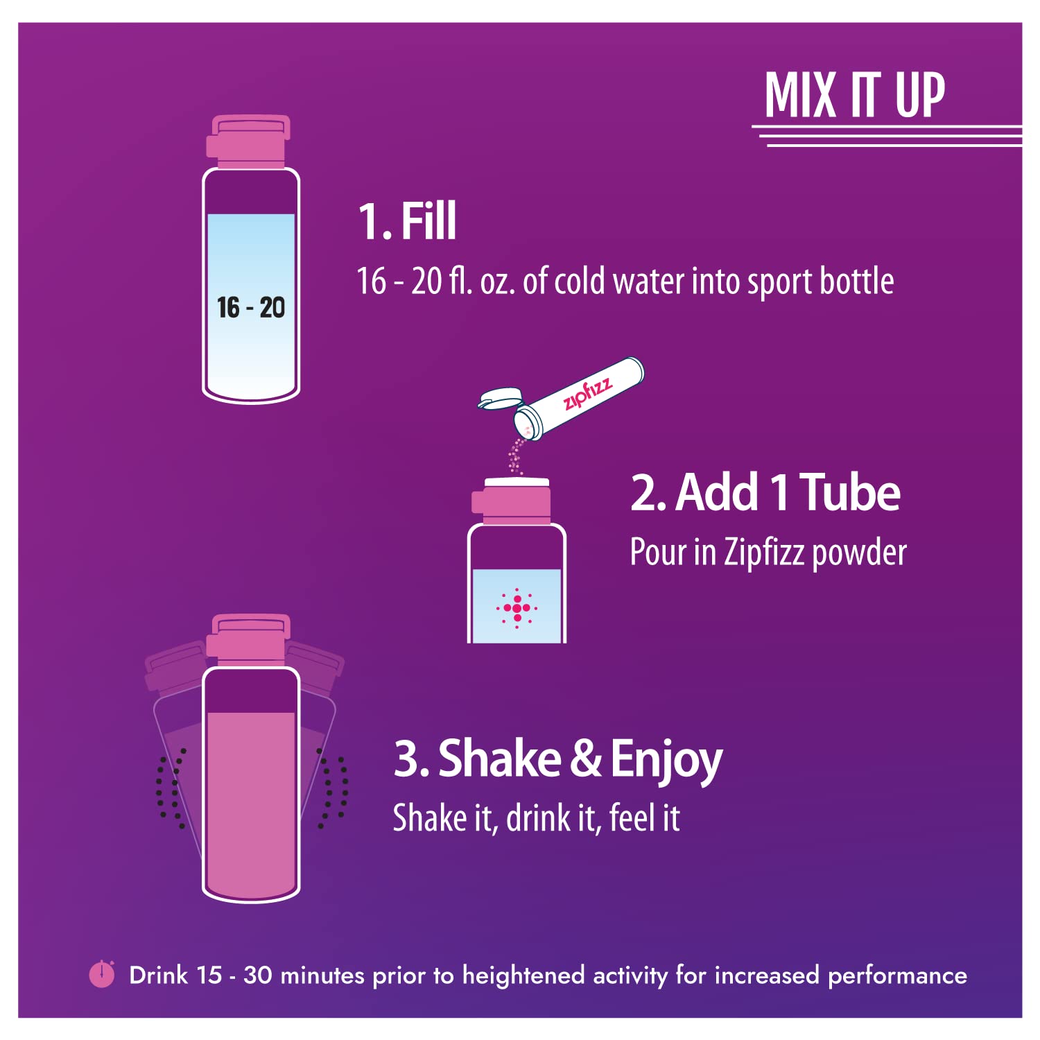 CLEAN ENERGY WITHOUT THE SUGAR CRASH : Zipfizz energy drink powder is loaded with health boosting vitamins, antioxidants, & electrolytes. Each tube contains vitamin B12 + 100mg of caffeine that's naturally sourced from Green Tea & Guarana.