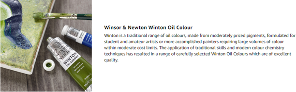 The Winton line is a traditional range of oil colors. They're made from moderately priced pigments and formulated for student and amateur artists or more accomplished artists requiring large volumes of color within moderate cost limits. This package contains ten 21-milliliter tubes of paint (cadmium yellow pale hue, cadmium red deep hue, french ultramarine, phthalo blue, virdian hue, burnt umber, yellow ochre, burnt sienna, ivory black, titanium white). Conforms to astm d4236.
