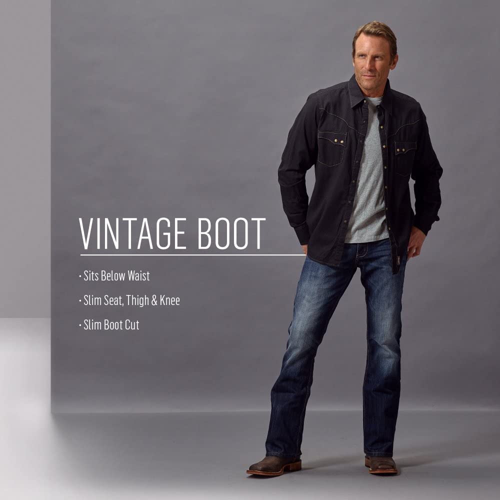 • VINTAGE STYLING. Vintage finishing has an instant broken-in appeal. These men's 20X jeans offer a classic look complete with signature Vintage finishes. Dressed up or down, these bootcut jeans have a contemporary western look and feel.