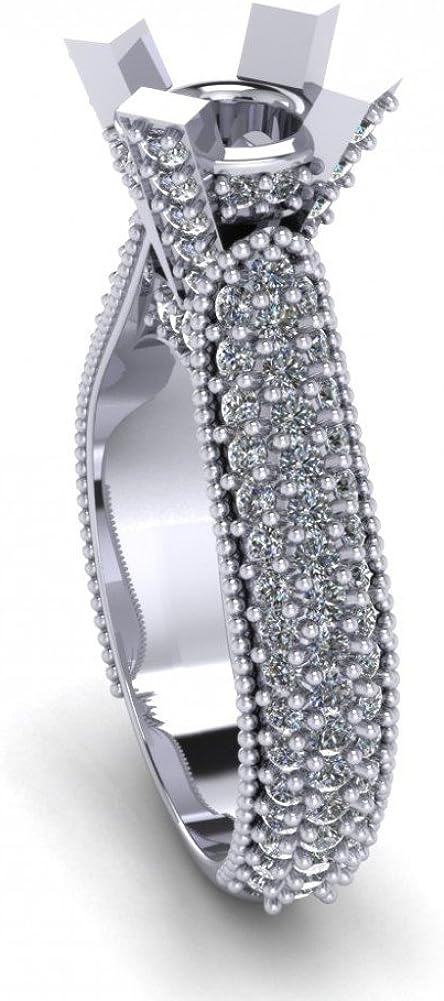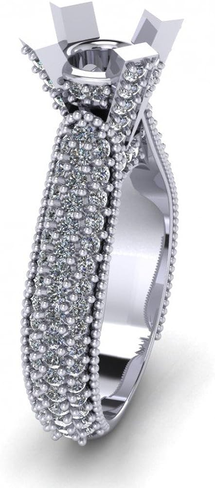 Madina Jewelry 1.90 ct Ladies Round Cut Diamond Semi Mount Ring in Pave Setting in 14 kt White Gold