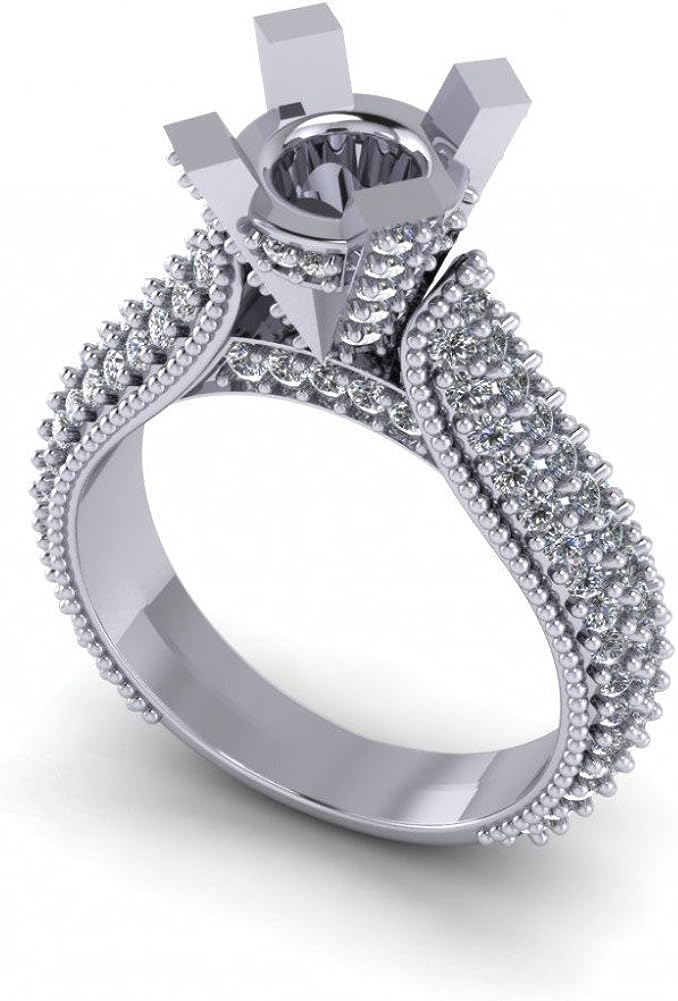 Madina Jewelry 1.90 ct Ladies Round Cut Diamond Semi Mount Ring in Pave Setting in Platinum