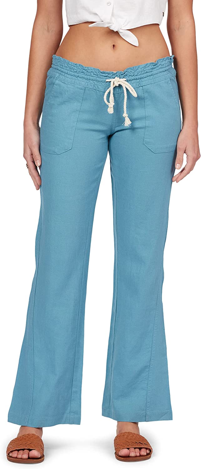 EASY FIT: Have some fun in the sun with the Roxy Oceanside pant featuring an easy, slightly looser fit with flared leg; Lightweight, linen blend fabric and elastic waistband with drawcord provide maximum comfort