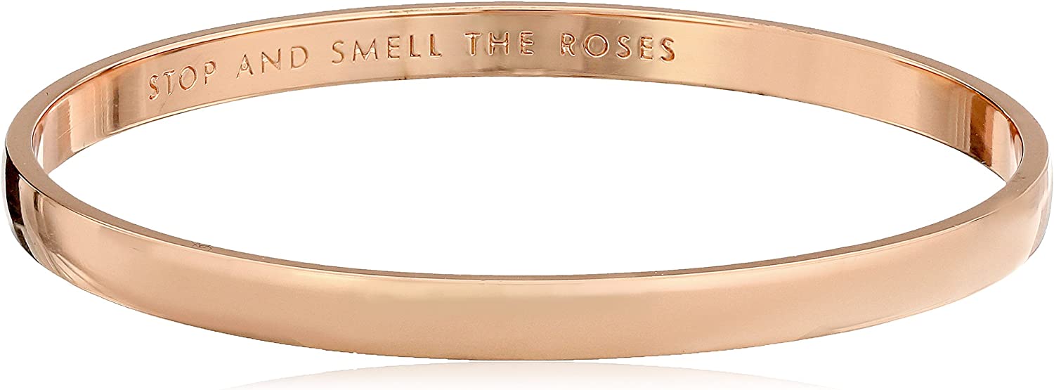 Quit working so hard! Give yourself a break and take note of all that is beautiful in life with the Kate Spade New York® Stop and Smell the Roses Idiom Bangle. Rose gold-plated metal. Inside inscription: "stop and smell the roses." Slip-on style. Imported. Measurements: Width: 1⁄5 in Diameter/Length: 2 3⁄4 in Weight: 0.6 oz