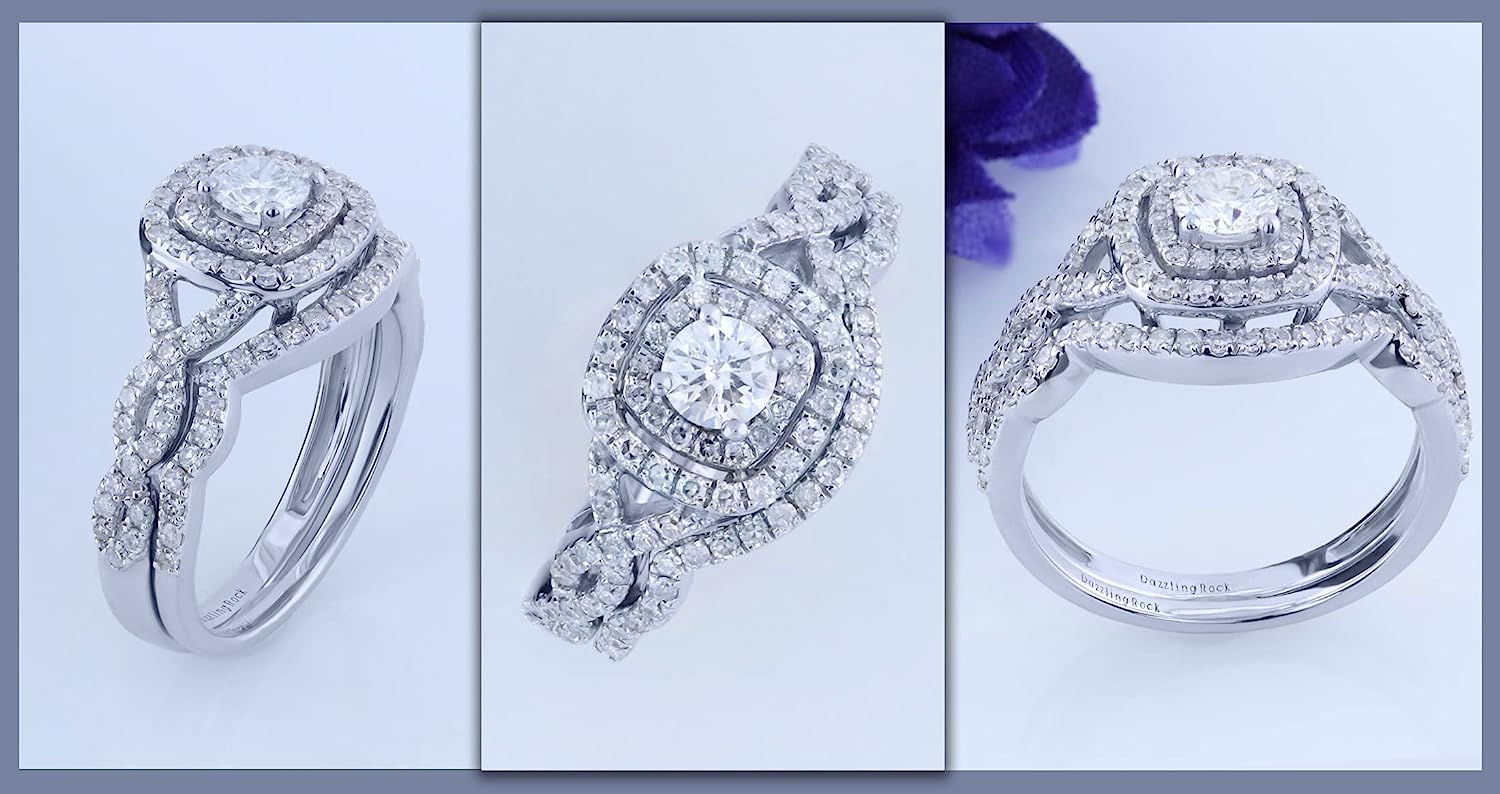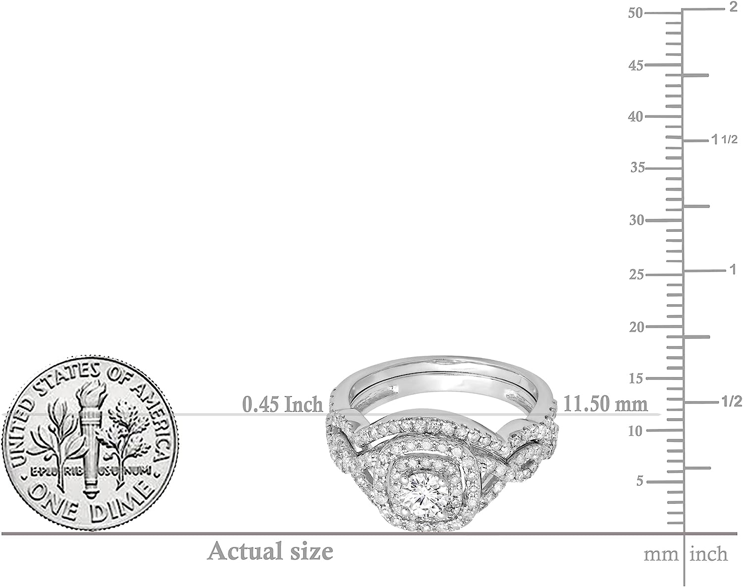 Dazzlingrock Collection Round White Diamond Cushion Bridal Halo Engagement Ring Set (1 ctw, Color I-J, Clarity I1-I3) in Gold