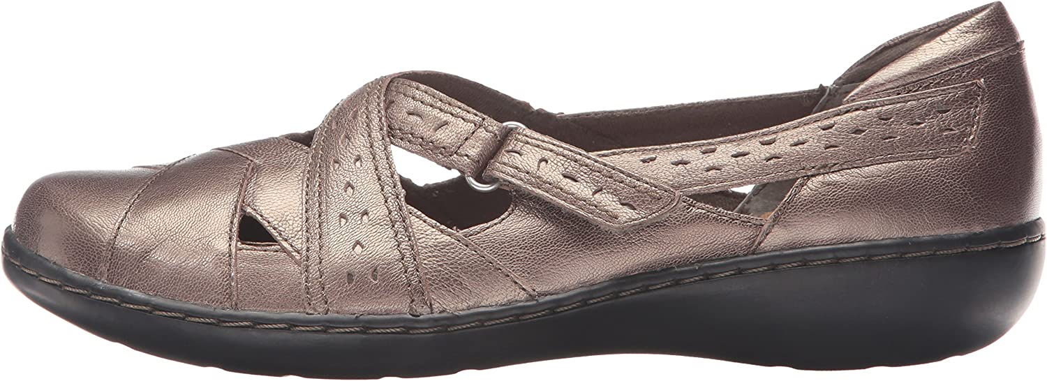 Beautifully constructed in soft leather with a low wedge for walking ease, this clarks collection shoe goes way beyond basic. an adjustable hook-and-loop strap, fabric linings, and super flexible, lightweight tpr outsoles cushion the foot in comfort.