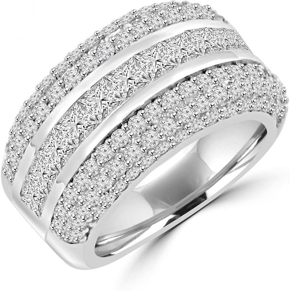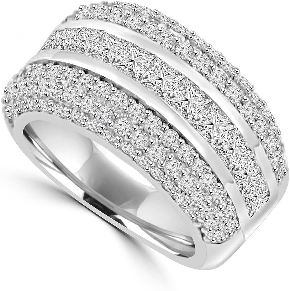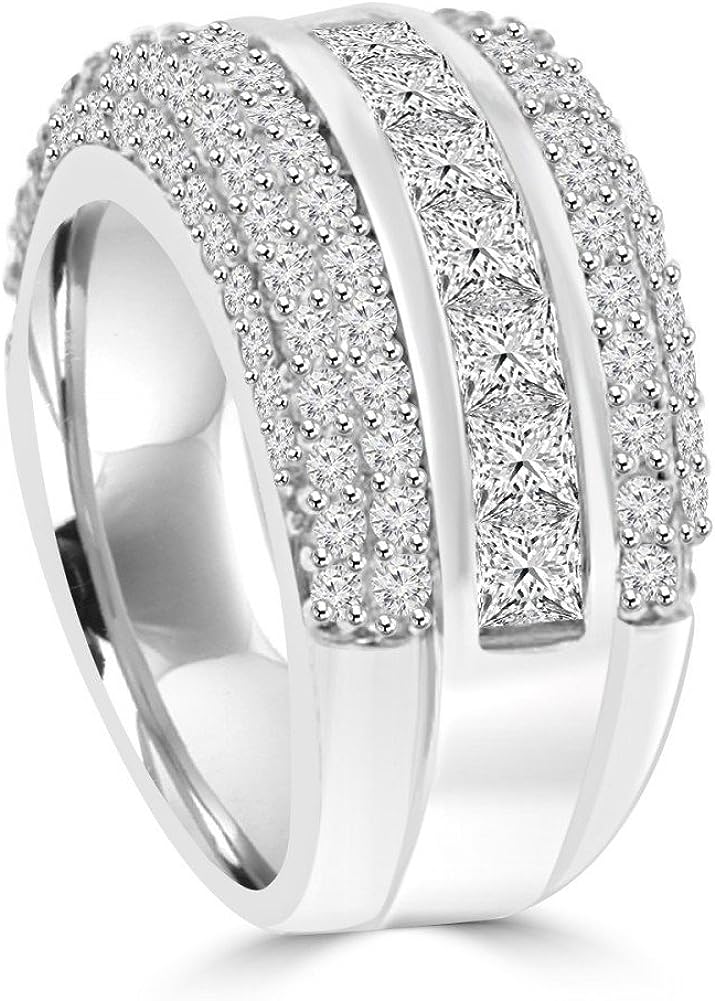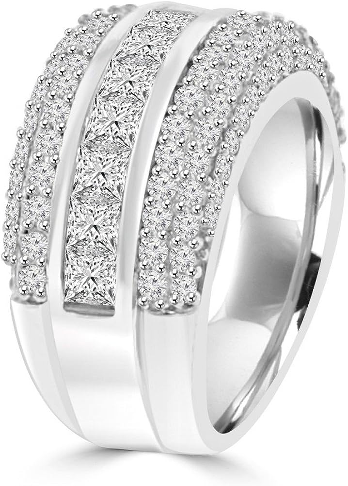 Madina Jewelry 4.10 ct Ladies Princess and Round Cut Diamond Anniversary Ring in 14 kt White Gold