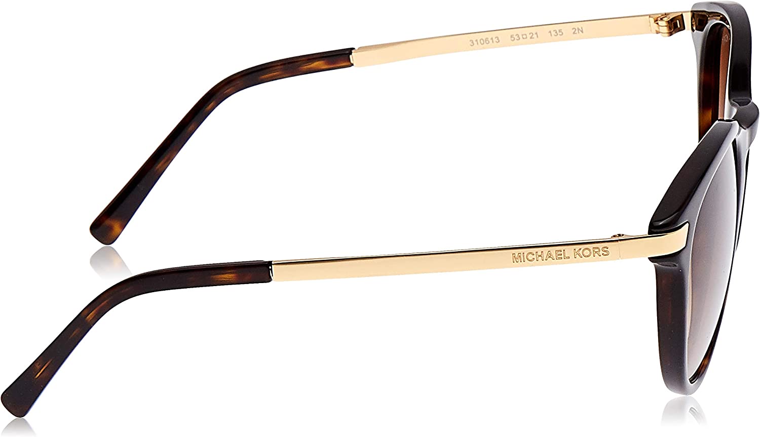 Michael Kors Adrianna IIIThis design from Michael Kors flows perfectly by combining the subtle shape of the frame and gradient lenses for a luxury look. The metal sides give the glasses a lightweight feel so you can make a statement all day long. UV400 lenses. This frame comes with a two years warranty. Colour code: 310613Colour: Dark TortoiseLens category: 3