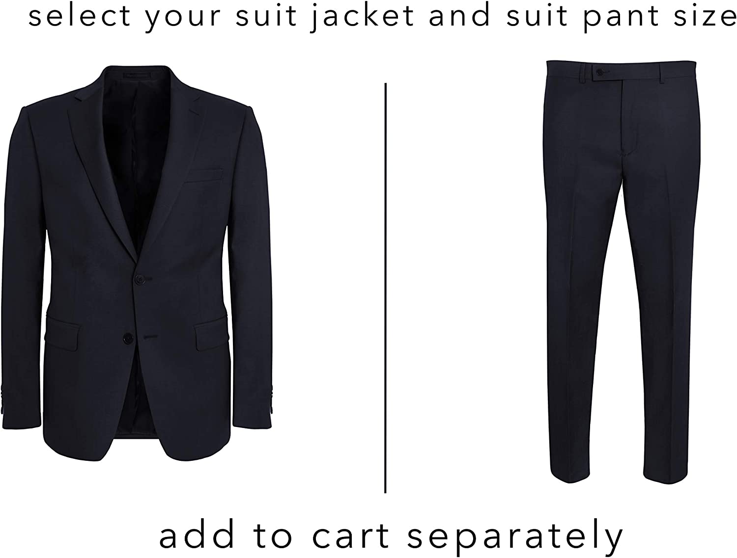 • The advantage of the Calvin Klein Slim Fit Suit Separate is the ability to customize your jacket and pant size. Select your sizes and add them to the cart separately. | The pant is designed to lay a bit lower on the hips and is nicely tapered from the thigh to a bottom opening that captures the modern look every man is looking to achieve. | This classic performance wool fabric with its refined aesthetic is easy to wear in any climate all year round.