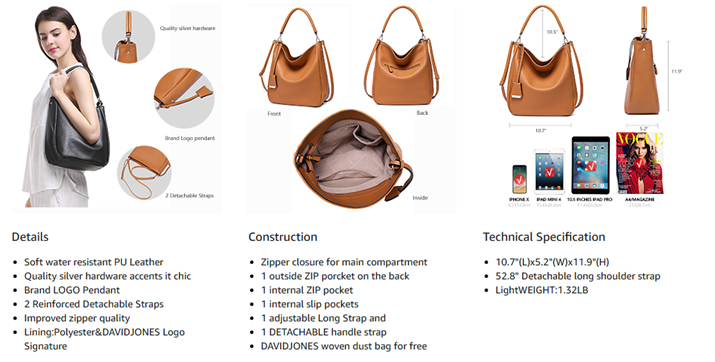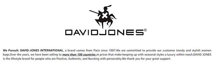 DAVIDJONES:a brand comes from Paris since 1987.Selling Handbags for Women and Girls in More than 100 countries.Great stylish and Convertible Womens Purses.Excellent craftsmanship and refined premium quality leather like PU bags.Decent high end women handbags with affordable price.