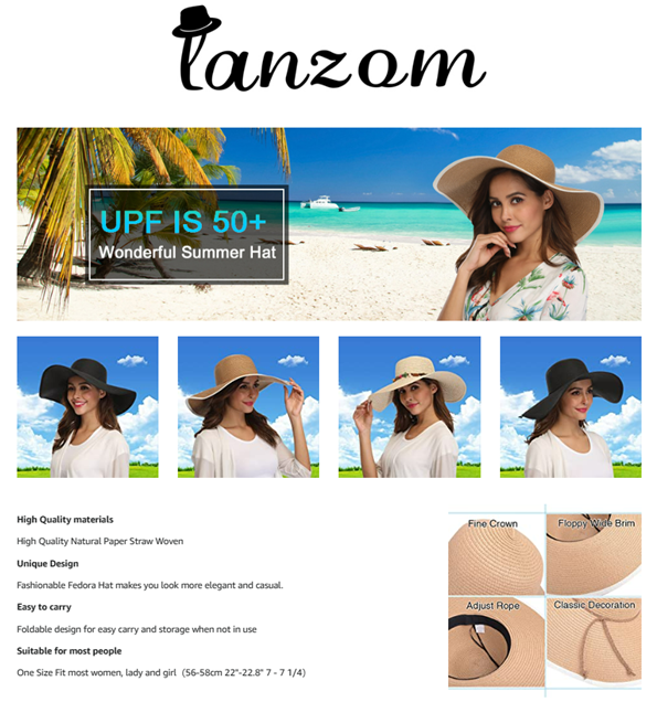 Lanzom Womens Wide Brim Straw Hat Big Floppy Foldable Roll up Cap Beach Sun Hat UPF 50+