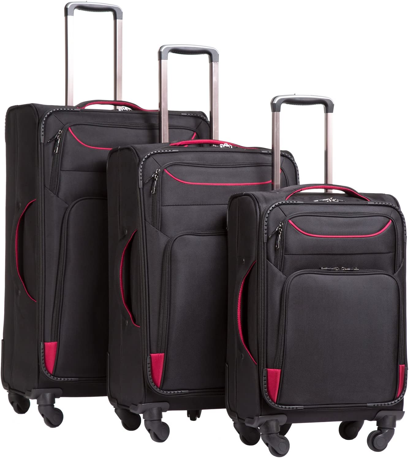 Coolife Luggage 3 Piece Set Suitcase Spinner Softshell lightweight (blue+sliver)