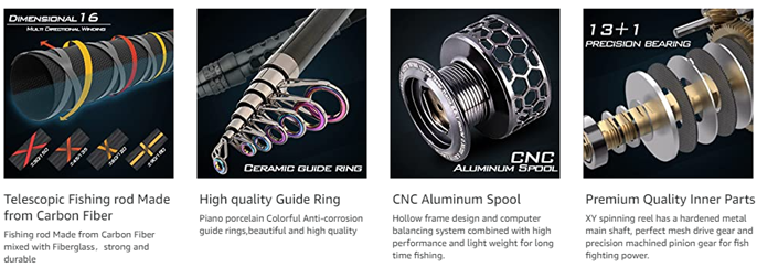 • The Rod:high density carbon fiber mixed with fiberglass make the fishing pole hard & durable,the hard and Light Weight Guide Ring Made by SIC Ceramic and The Heat Dissipation is Better. Its Lower Friction Coefficient Making It Durable, And Its International Advanced Epoxy Resin Adhesive Make The Guide Ring More Solid.