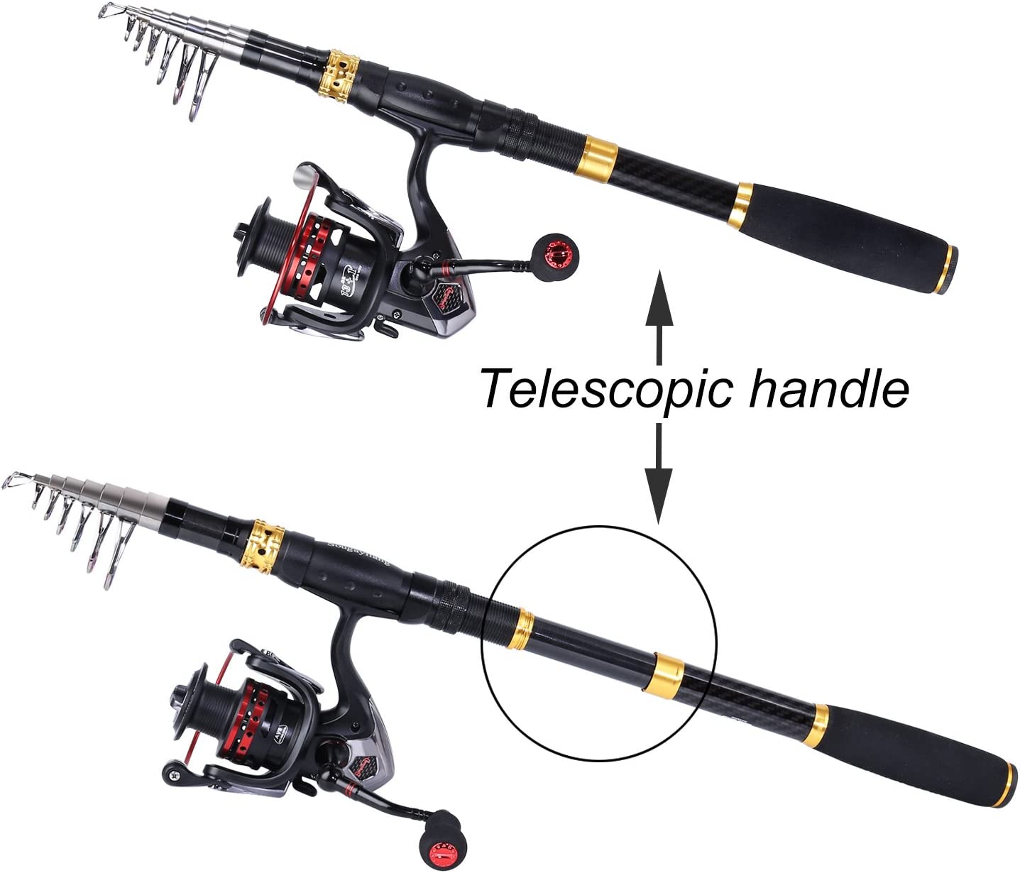 • Fishing rod reel combos with carrier bag and nessary accessories for fishing,include: One carbon fiber telescopic fishing rod+ One fishing reel +One carrier bag +Three fishing lures +fishing line+ some nessary accessories.