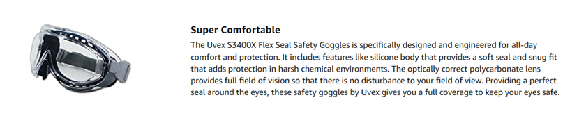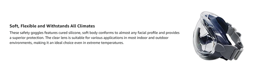 The silicone construction and design of the Uvex Flex Seal goggle offer exceptional advantages over other over-the-glass (OTG) goggles for all-day comfort, superior fit and climate adaptability. No other goggle comes close to matching this level of comfort. The lightweight, cured silicone, soft body conforms to almost any facial profile and provides an exceptionally snug fit for superior protection — even in extreme temperatures. Once workers experience it, they'll never want to wear anything else. Made in the USA.