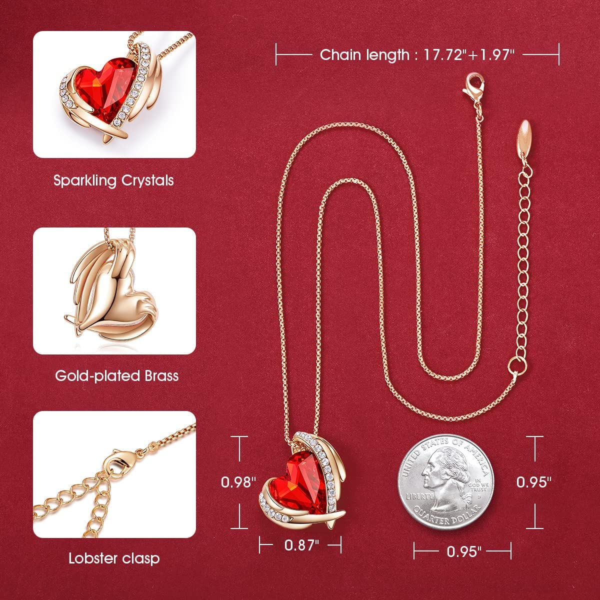 • WOMEN NECKLACE SPECIFICATIONS: Pendant Size: 0.98*0.87 inch |Chain Length: 17"+ 2" |Plating: Rose Gold Plated Silver-tone | Clasp: Lobster Claw. Women's jewelry stone: embellished with Austrian Crystals, Wild Heart Shaped Stone, Green,heart necklaces.