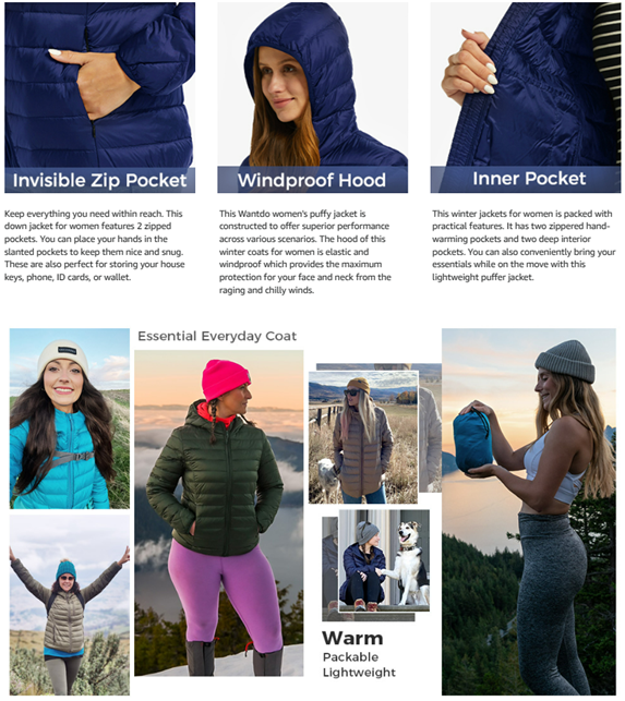 • Practical Light Weight Jackets - Our down jacket for women is thoughtfully designed with 2 zippered pockets, 2 interior pockets, so that you can bring all your valuables wherever you go.