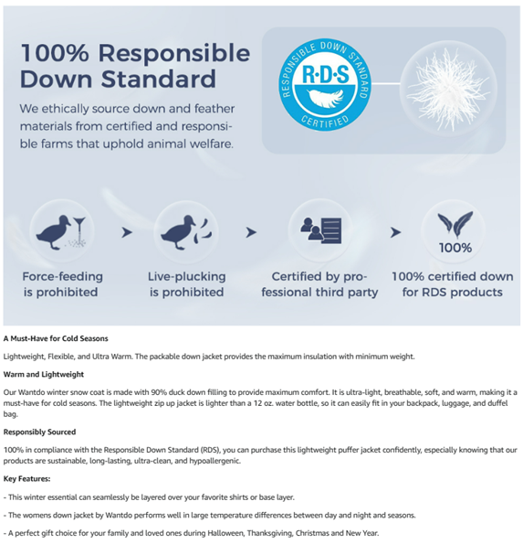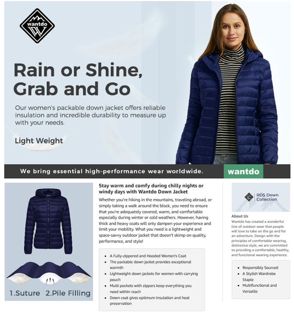 • RDS-certified - Our puffy jacket for women offering insulation with responsibly-sourced and RDS-certified duck down filling, while maintaining a stylish, warm and comfortable.
