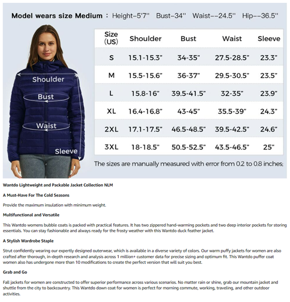 • Made with Care - Trust in our high-density women's packable down coat, constructed with sturdy zippers for keeping security. The durable fabric stands up to tears and wear, looks great and lasts even with daily use.