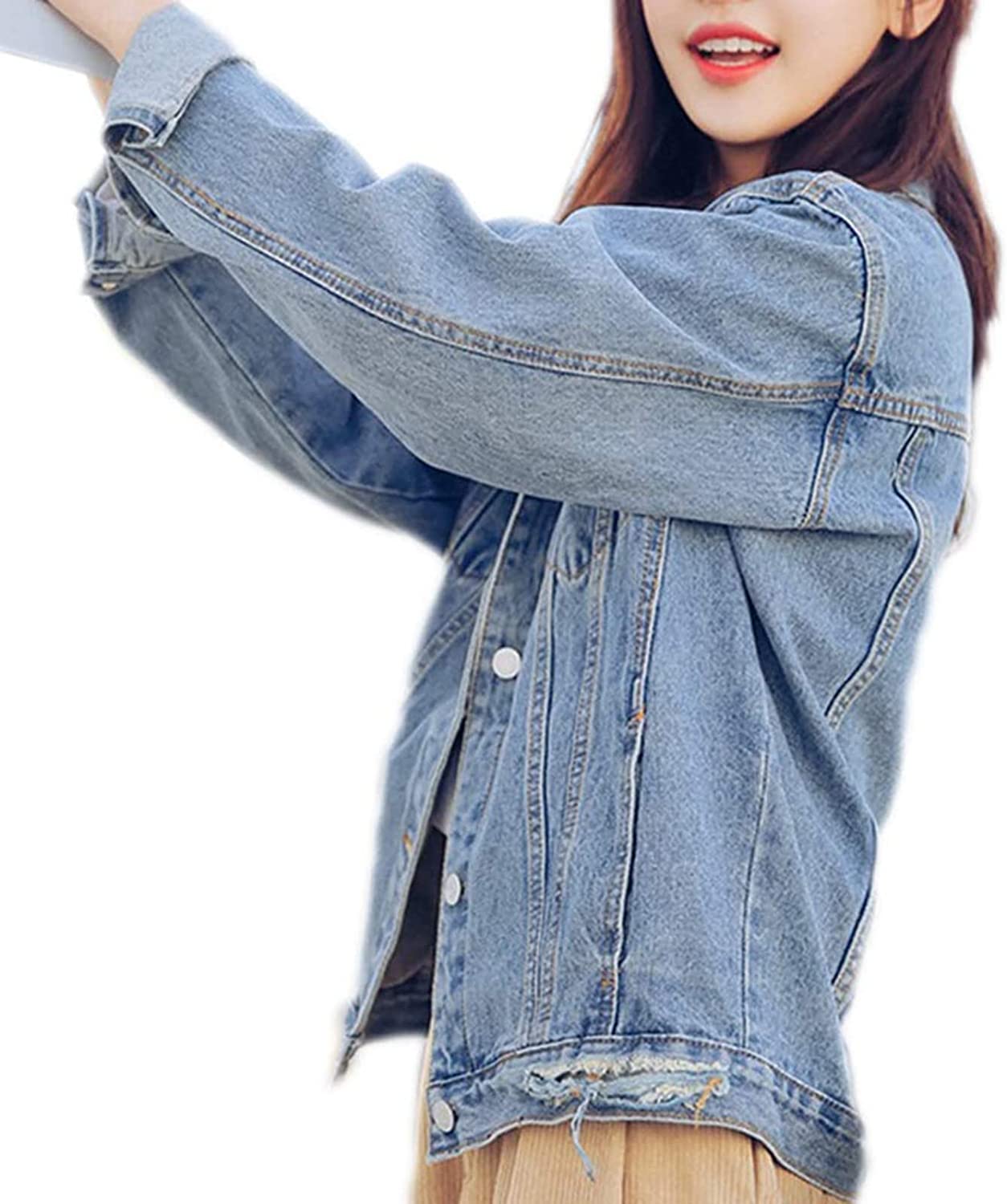 Saukiee Oversized Denim Jacket Distressed Boyfriend Jean Coat Jeans Trucker Jacket for Women Girls
