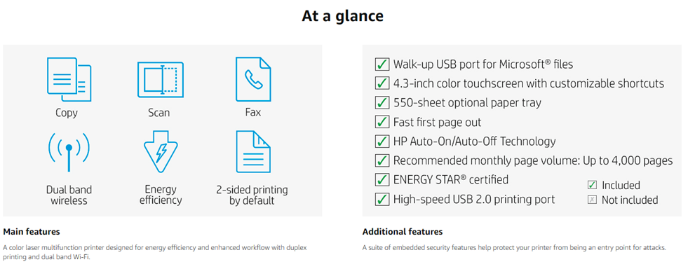 - HP WOLF PRO SECURITY – Protect company data and safeguard against cyberattacks with protection built into the printer hardware, firmware and OS