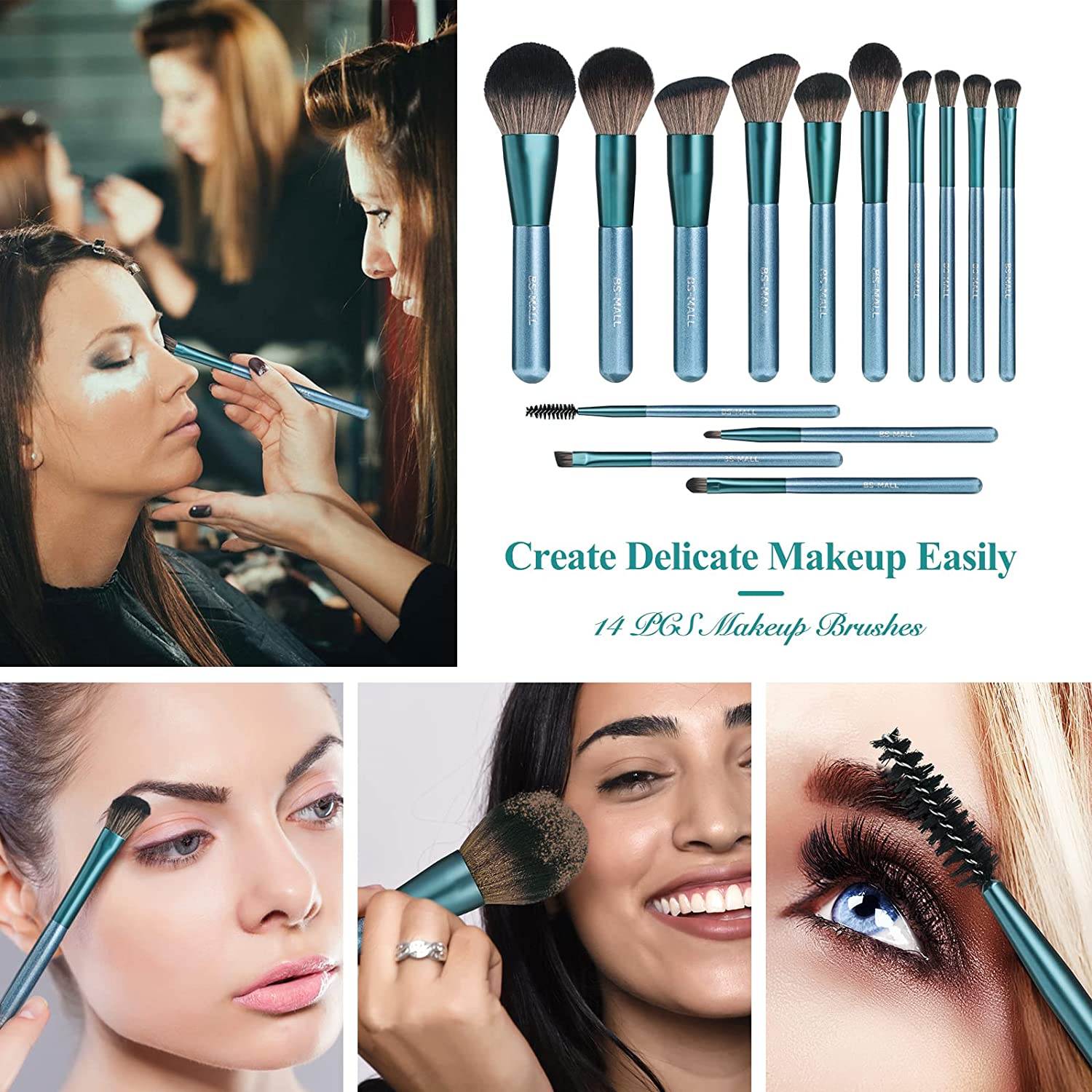 - 【14 Pcs Professional Makeup Brushes】 Containing foundation, eye shadow, eyebrows, concealer, blush and blending all essentials in one set. Perfect for applying, blending and shading all types makeup products such as liquids, powders, or creams. Convenient for daily makeup use and easy to acheive a professional elegant makeup effect.