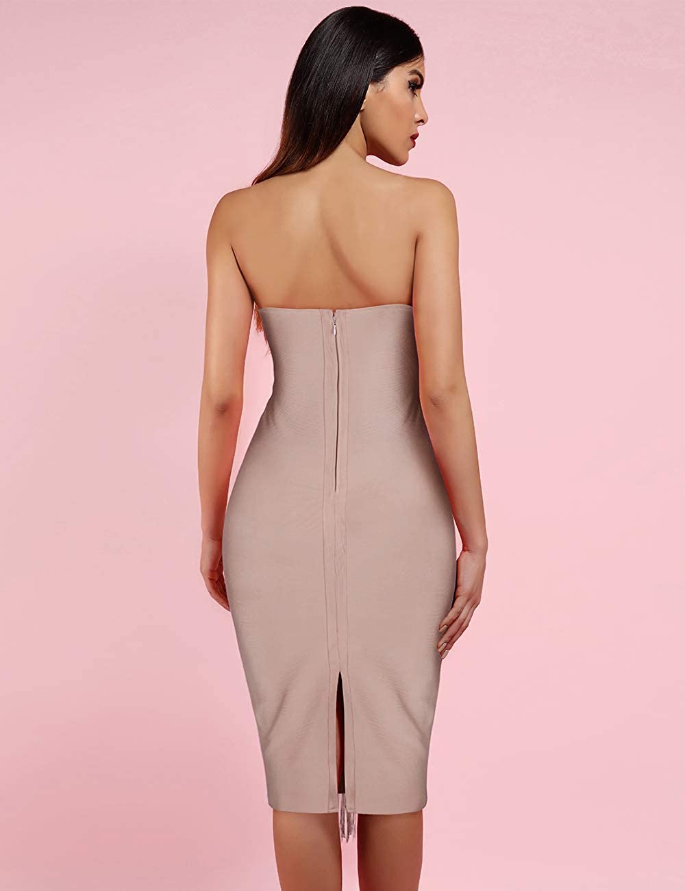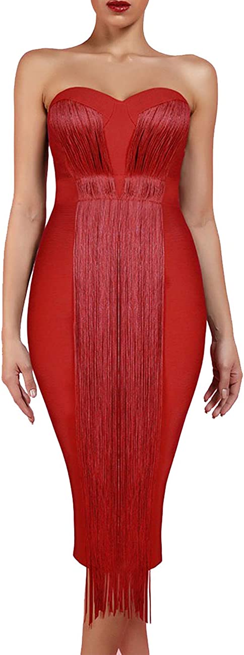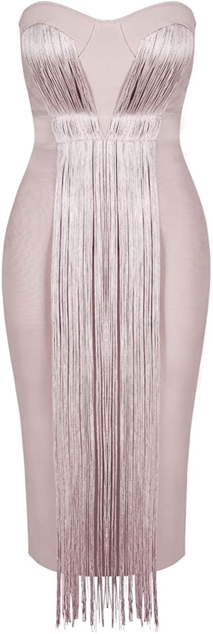 UONBOX Women's Strapless Elegant Tassel Tube Dress Bodycon Party Bandage Dress