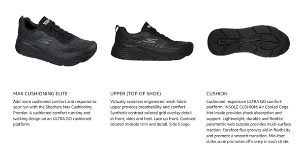 • Add more cushioned comfort and response to your run with the Skechers Max Cushioning Elite. A cushioned comfort running and walking design on an ULTRA GO cushioned platform.
