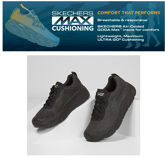 Add more cushioned comfort and response to your run with the Skechers Max Cushioning Elite™. A cushioned comfort running and walking design on an ULTRA GO® cushioned platform. The company's success stems from it's high quality, diversified, and affordable product line that meets consumers' Various lifestyle needs. Since it's inception in 1992, the Skechers diverse product offering has grown from utility style boots to include seven Skechers brands and five uniquely branded fashion lines for men and women. Skechers is an award-winning global leader in lifestyle footwear offering shoes that appeal to trend-savvy men, women and kids everywhere. The brand's styles include the latest innovative athletic, casual and fashion sneakers as well as sandals and boots—with many collections featuring Skechers air-cooled memory foam insoles for added comfort. Plus, Skechers offers a range of slip-resistant work FOOTWEAR for men and women, as well as cool, fun, playful and lighted styles that boys and girls love. Always ahead of the fashion curve, Skechers has made its sport, casual and dress casual shoes essential to every closet.