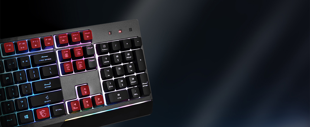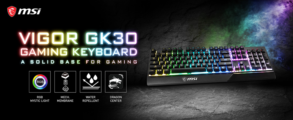 MSI Vigor GK30 RGB Gaming Keyboard, 6-Zone RGB Lighting, Water Repellent & Splash-Proof, Mechanical-Like Plunger Switches