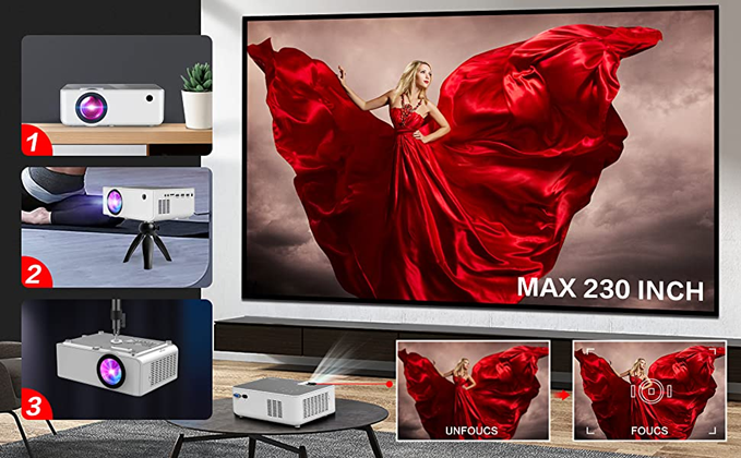 Because of using 6 layer high refactive galss lens and up to 65000hrs life span, this hd wifi movie projector will be so helpful to company you spend lots of great day and night time , like watching movie, football live , listen music and so on.
