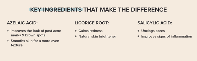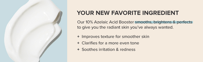 CLARIFY SKIN, SOOTHE IRRITATION: This highly effective serum booster is a multi-action powerhouse, featuring Azelaic Acid, known to reduce the look of blemishes and acne, while also helping to fade brown spots and marks from previous acne breakouts.