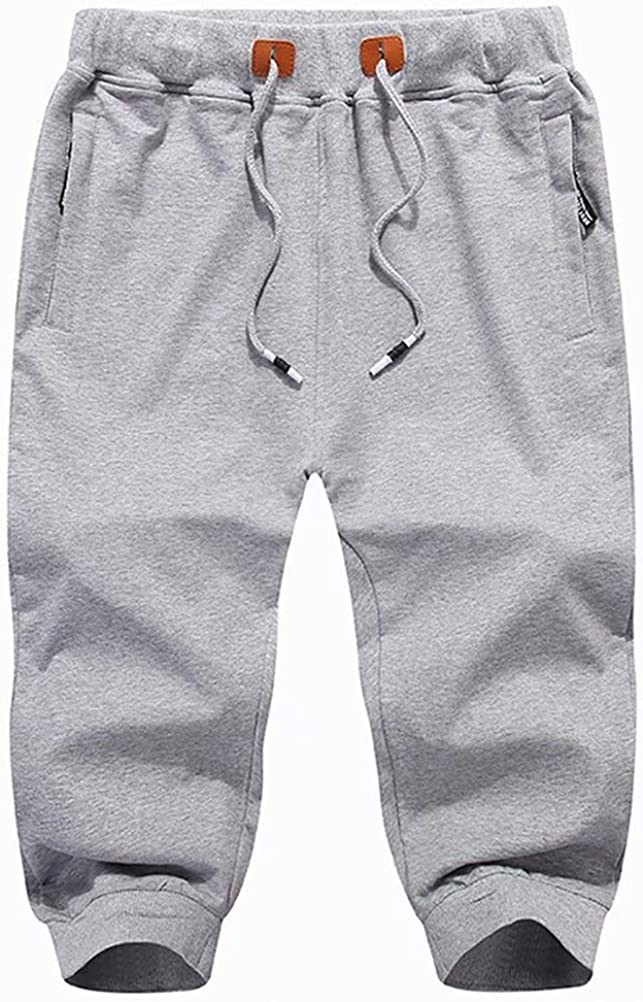 BIYLACLESEN Men's Capri Joggers 3/4 Pants Gym Workout Below Knee Pants with Three Pockets
