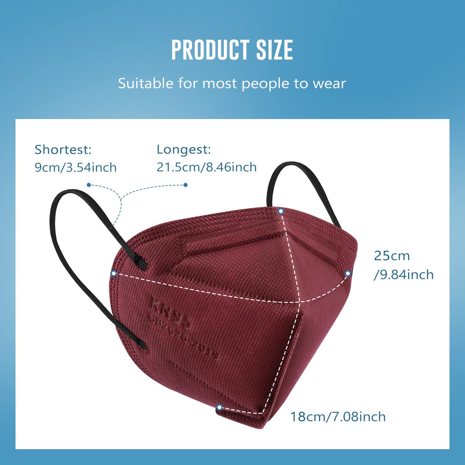 Powerful Protective Barrier : Not easy to drop, no need to adjust it when you work. Softer elastic ear loop design of the KN95 face mask helps eliminate pressure on the ears for comfortable experience. Adjustable nose clip design can help the mask perfectly attach onto your face. The four sides join tightly to the face; Hence, the protective mask KN95 avoids unfiltered air directly entering into.