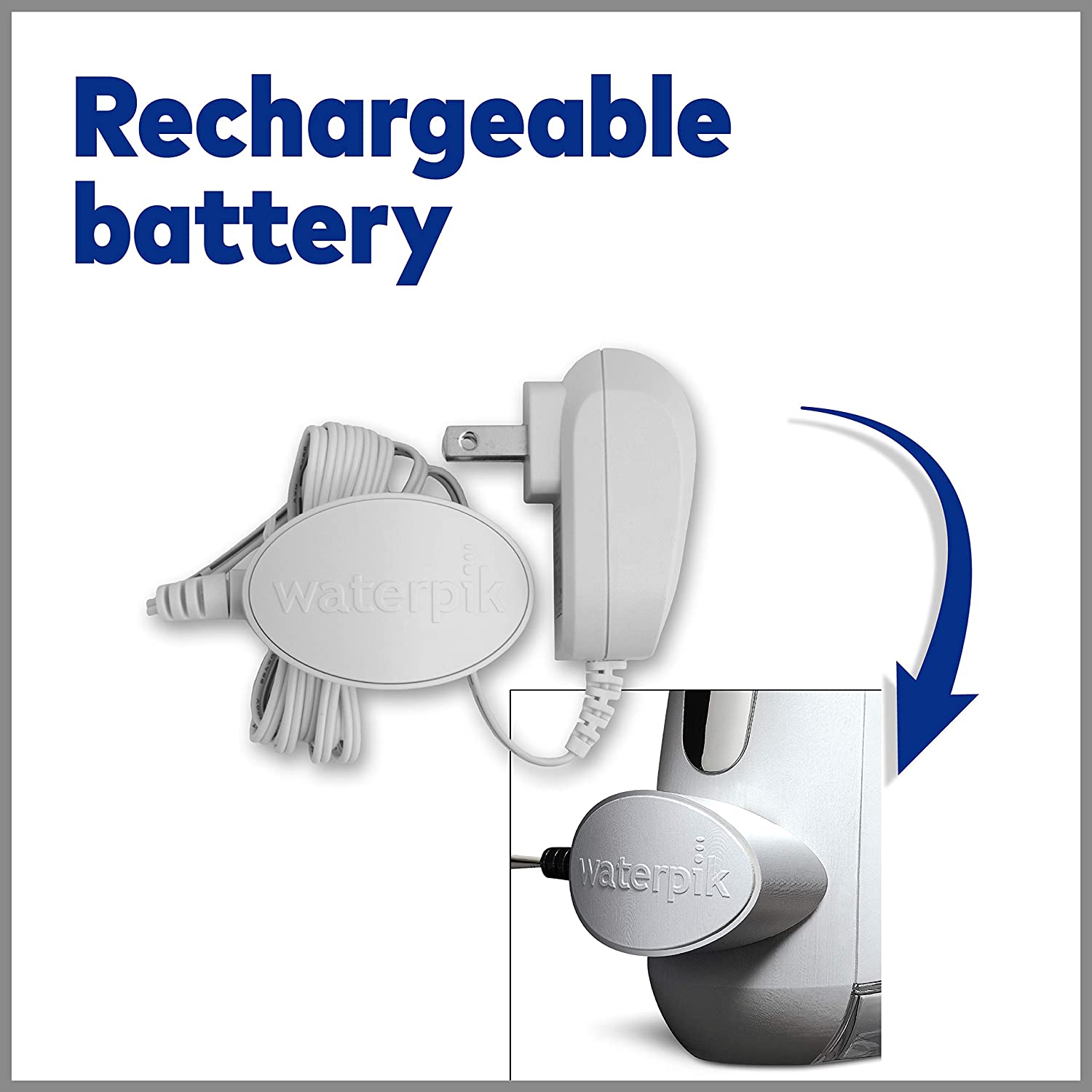 The Waterpik Cordless Advanced Water Flosser provides a unique combination of water pressure and pulsations to clean deep between teeth and below the gumline, removing plaque and debris that traditional brushing and flossing can't reach. It is the first product in its class accepted by the American Dental Association (ADA). The Waterpik Cordless advanced water Flosser is a great solution when you want the convenience of cordless water flossing. Rechargeable, portable, and with an extra quiet design, it's perfect for use in smaller bathrooms or for travel. The Cordless Advanced includes 3 pressure settings allowing you to personalize your water pressure intensity. It also features a waterproof design for use in the shower, 4 hour rapid charge, and an easy to fill reservoir. Backed by a 2-year manufacturer's limited warranty, see product manual for details.