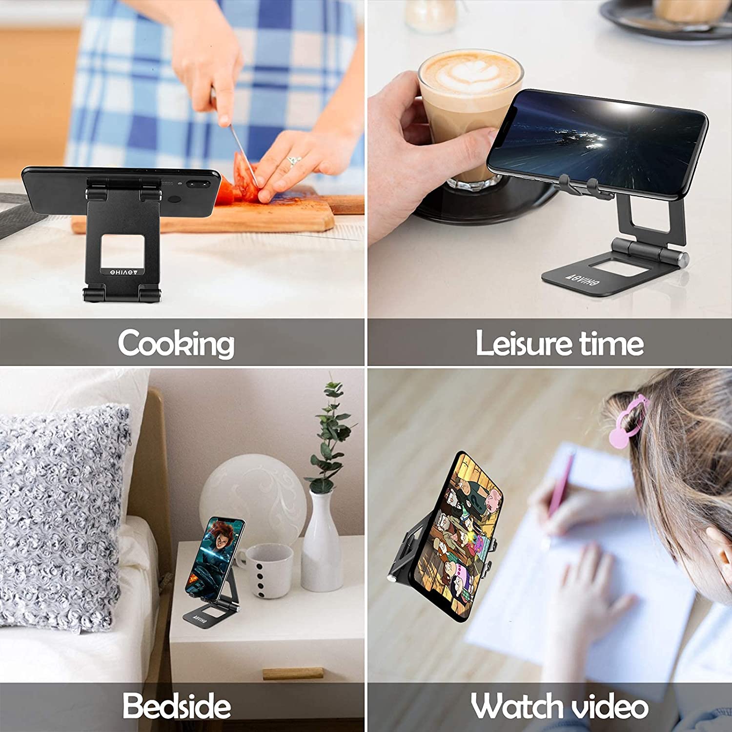 【PORTABLE & FULLY FOLDABLE】: The desktop phone cradle is fully foldable, you can put it in your backpack even in your pocket and portable to take it anywhere, such as going to have a coffee or on the train to traveling and so on.