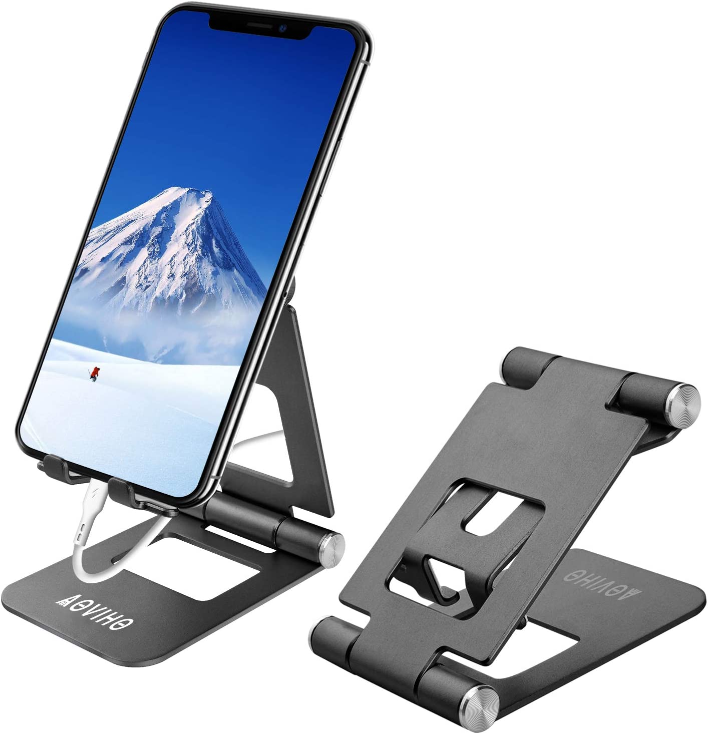 Aoviho Adjustable Cell Phone Stand Holder Fully Portable Phone Holder - Small Aluminum Desktop Stand for iPhone 12 Pro Mini 11 X XR XS Max 8 7 6 Plus (Black)
