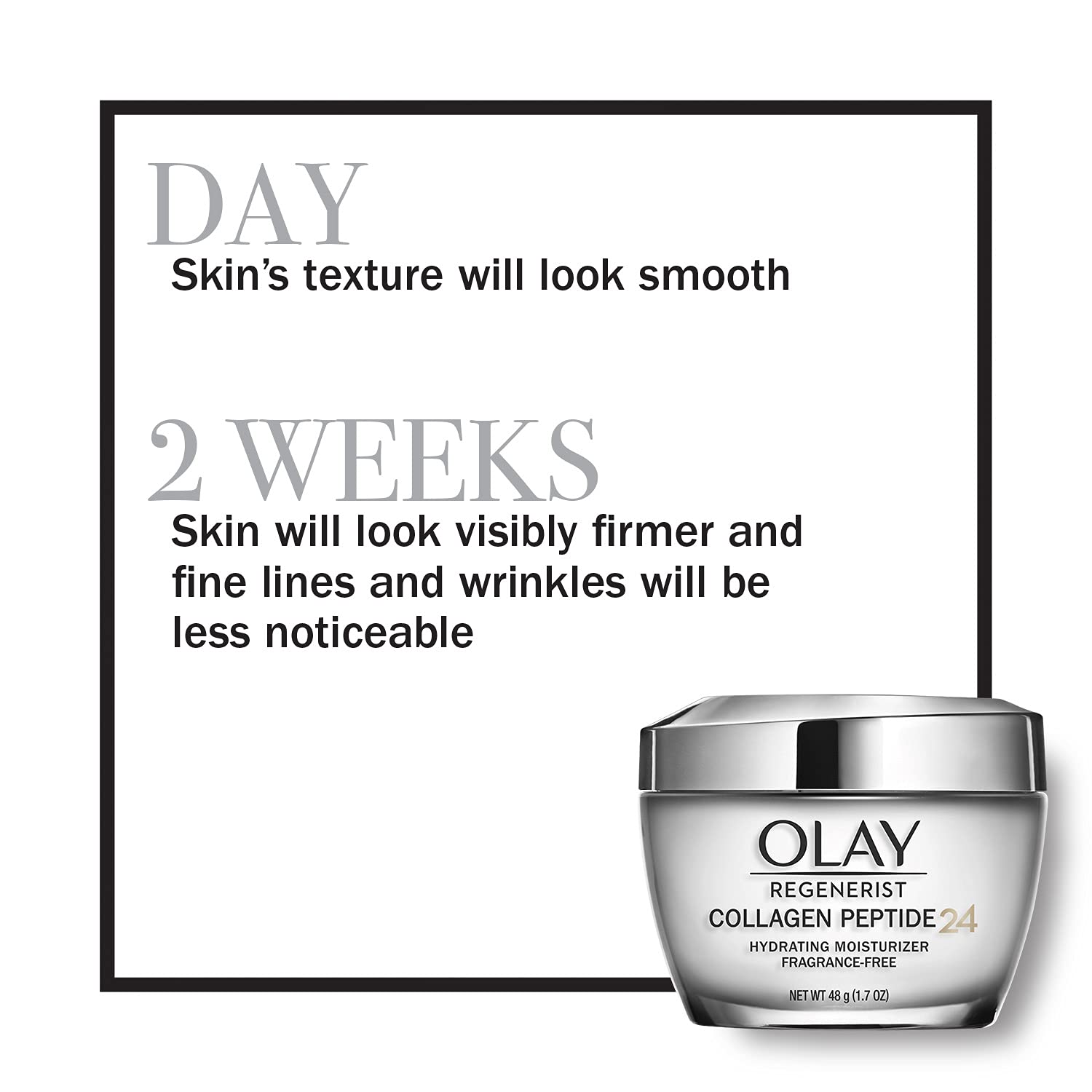 Olay Regenerist Collagen Peptide 24 Face Moisturizer Cream with Niacinamide for Firmer Skin, Anti-Wrinkle Fragrance-Free 1.7 oz, Includes Olay Whip Travel Size for Dry Skin