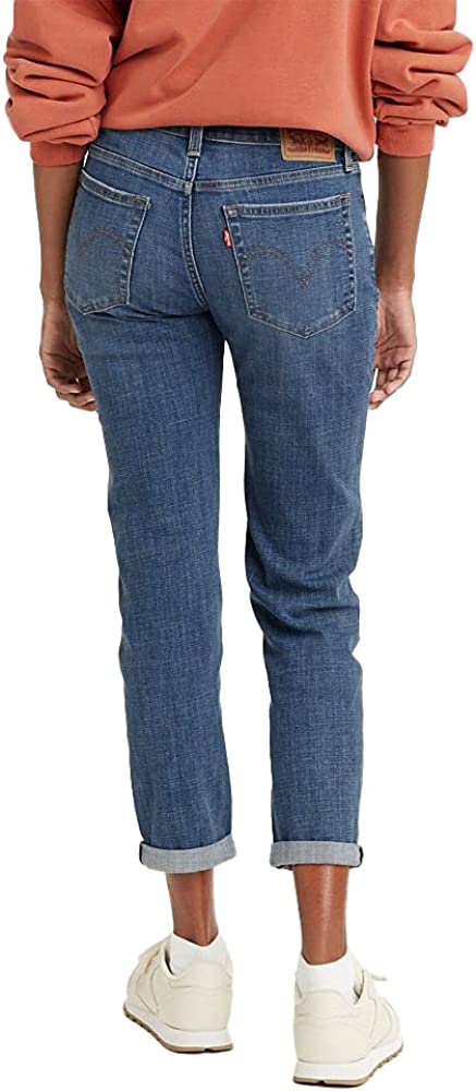 The Levi's Plus Boyfriend jeans are the hottest on-trend cut for the hottest look around! Mid-rise boyfriend jeans flaunt a straight leg, and easy fit through the waist and seat. Roll or unroll cuffs as you see fit. Super soft fabric with stretch and recovery to ensure the jeans keep their shape all day. Classic five-pocket design with signature arcuate stitch. Leather brand patch at the back waist. Woven flag patch set at the back right pocket. Belt loop waistband. Zipper fly and button closure. 79% cotton, 19% polyester, 2% elastane;White: 97% cotton, 3% elastane. Machine wash cold, tumble dry low.