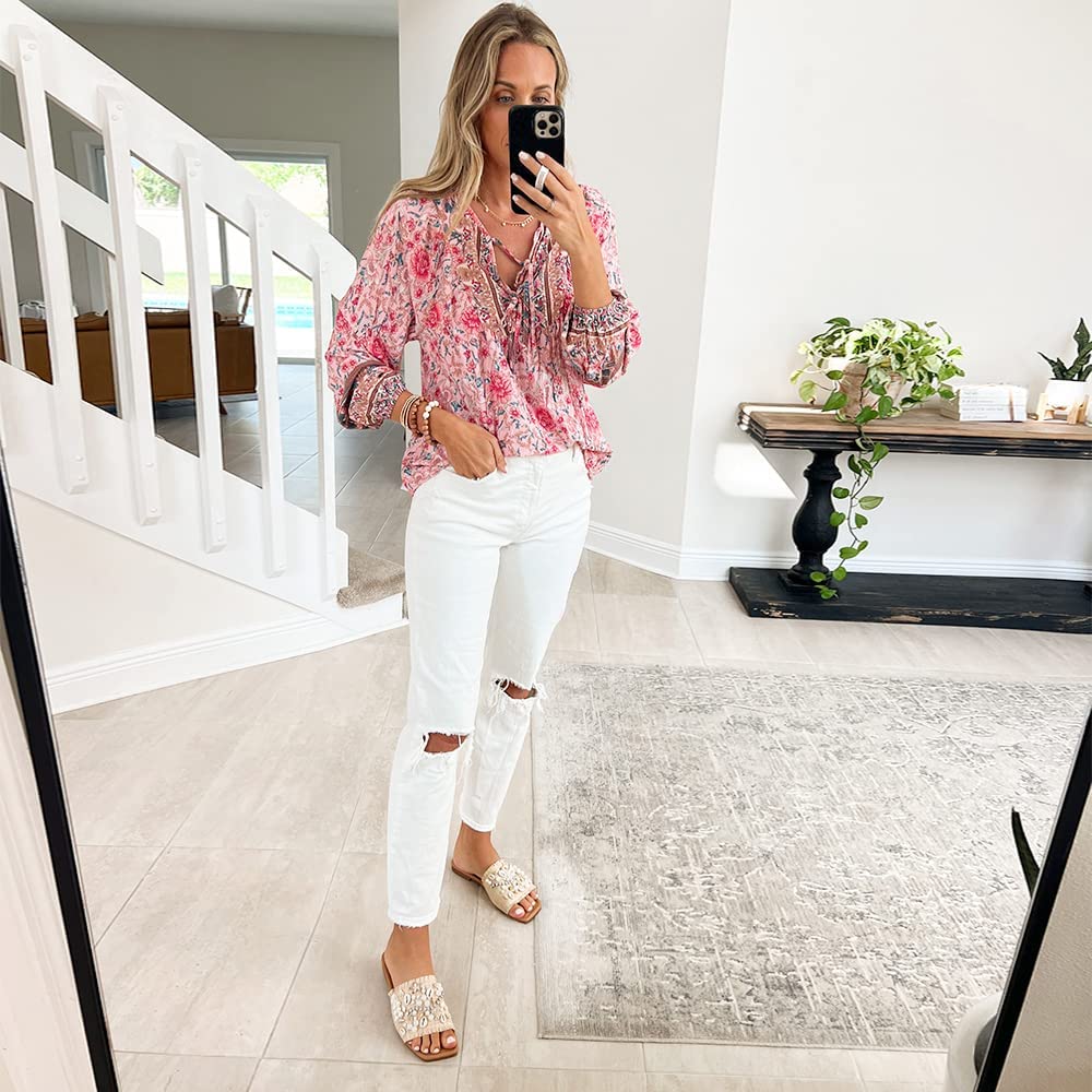 Unique Design: Fashion v-neck and sweet 3/4 short sleeve design, make you look very stylish and fashion, the floral print loose casual style will make you look more energetic.