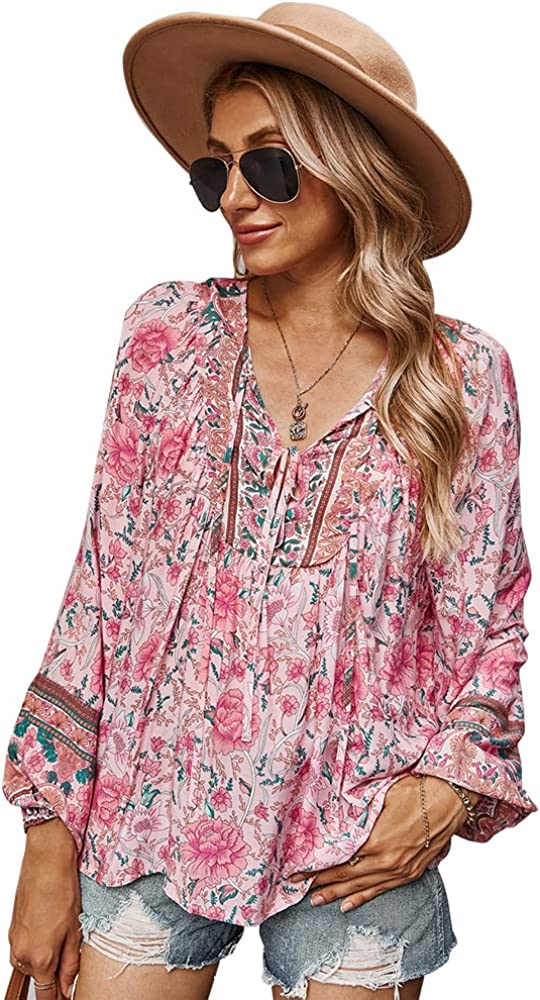 Features: Fresh and stylish style, sexy v-neck, 3/4 sleeve, elastic cuffs, loose fit, floral print top, decorative buttons, flowy hem, super cute.