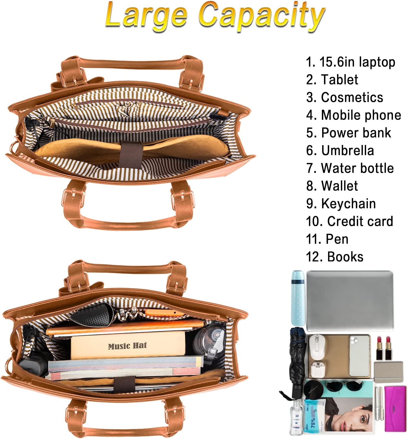 • Many Pockets: The laptop bag for women has an independent laptop compartment fits under 15.6 inch laptop and Ipad/tablet, a large main pocket designed for documents, gadgets and more. A middle opened pocket and a middle zippered pockets for all your personal stuff, two small square pockets and a small zipper pocket for your phone or wallet. There also has a side-pocket for power bank inside, an anti-theft pocket outside of this women handbag, Mother's Day gifts for women