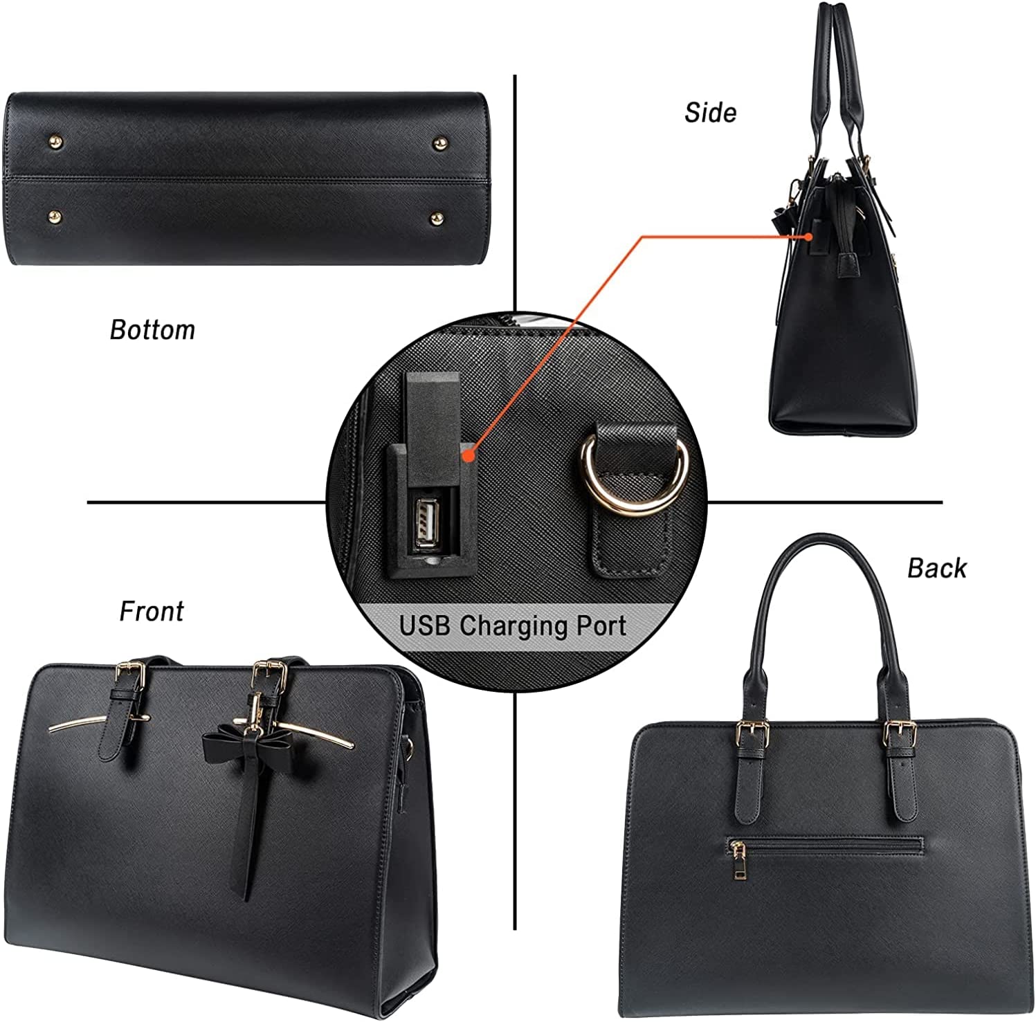 • Comfortable & Fashionable Design: This womens stylish laptop bag has length adjustable shoulder strap and handle, is suitable for different body type. And has a detachable cute tassel ornament attached in the front of this women laptop briefcase with USB port. It is suitable for work, college, cafes, shopping, party, travel and other occasion as a ladies briefcase,teacher tote bag, computer bag for women or women crossbody work bag. Great gifts for teachers women, gifts for business women