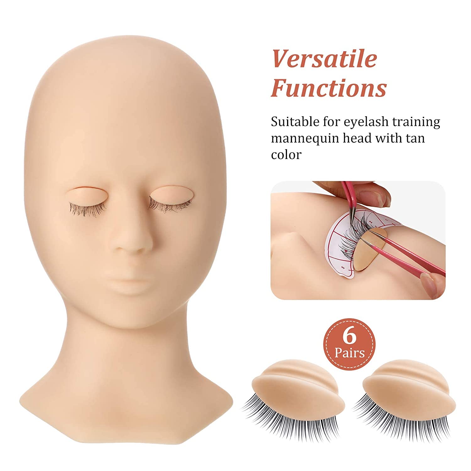 Versatile functions: these mannequin head eyelids can be applied to practice makeup on eyes or eyelash extensions, fit for training and teaching, will make the process effective and provide nice performance