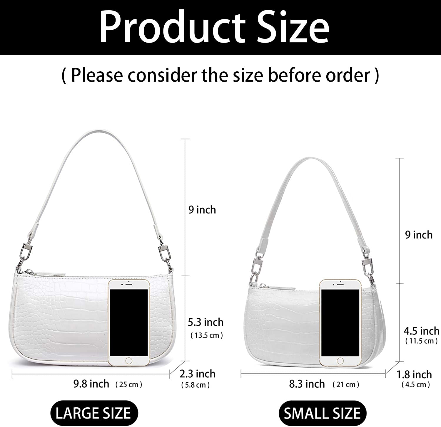 • Perfect Size for Women : 9.8 x 5.3 x 2.3 inch,a slim and rectangular small handbag fits casual or formal dress