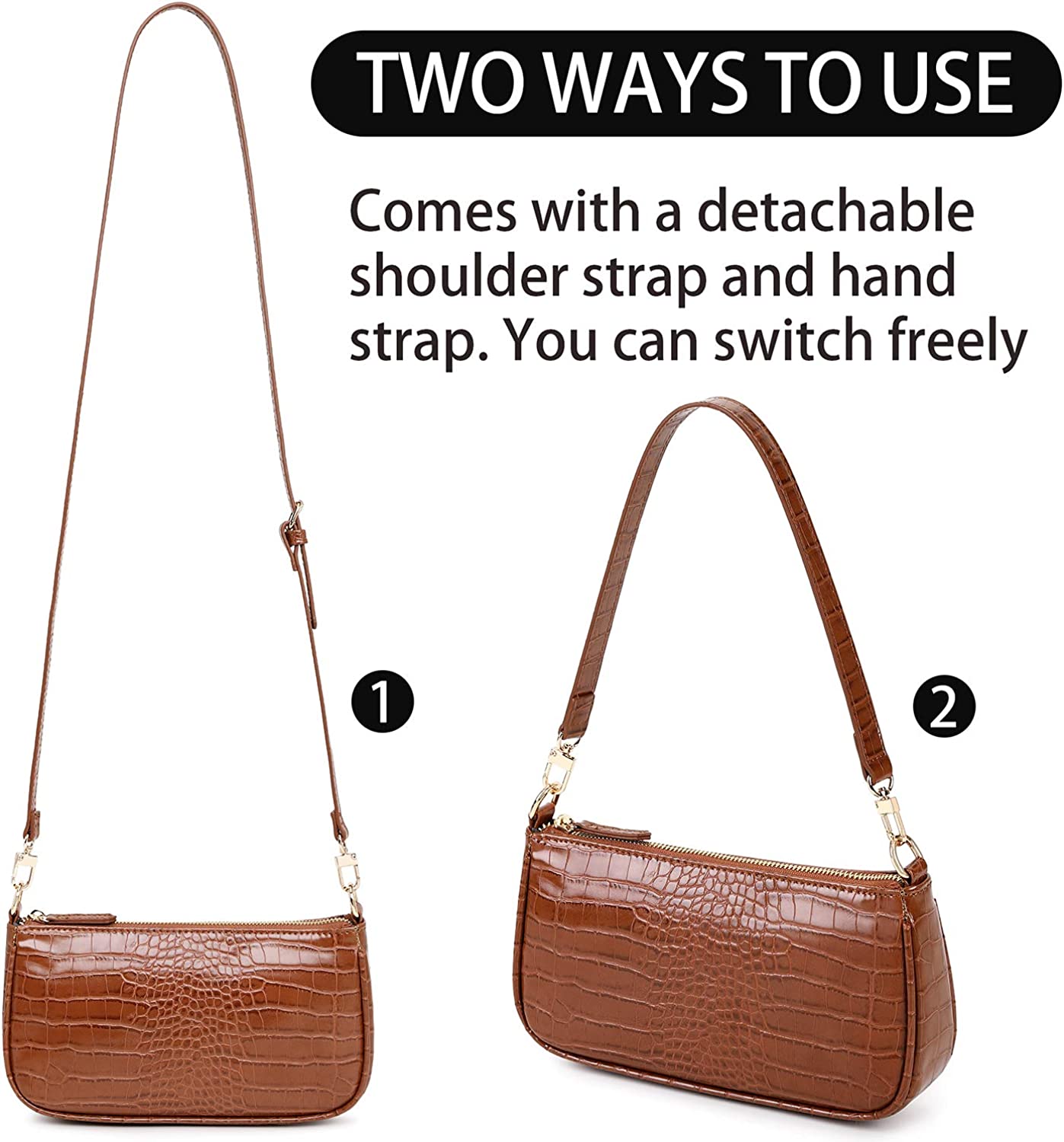 • Comes with a detachable handle and shoulder strap. Can be used as a mini shoulder bag or as a crossbody bag