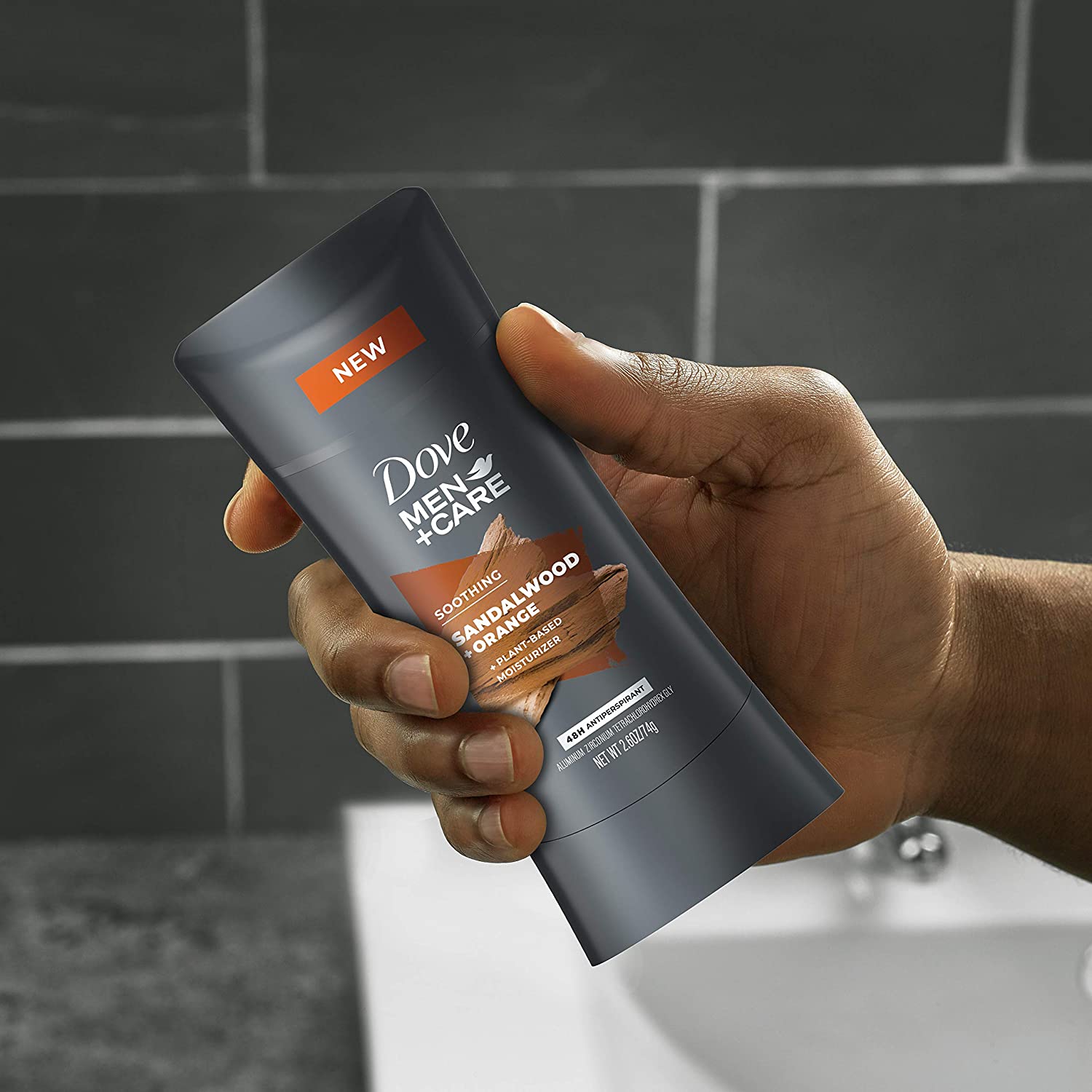 • Dove Men+Care Sandalwood + Orange Antiperspirant delivers long-lasting 48-hour protection against odor with a soothing scent derived from natural essential oils