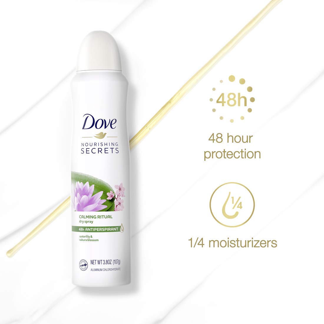 Dove Nourishing Secrets Dry Spray Antiperspirant Deodorant Waterlily & Sakura Blossom 3 Count for Women 48 Hour Sweat & Odor Protection 3.8 oz