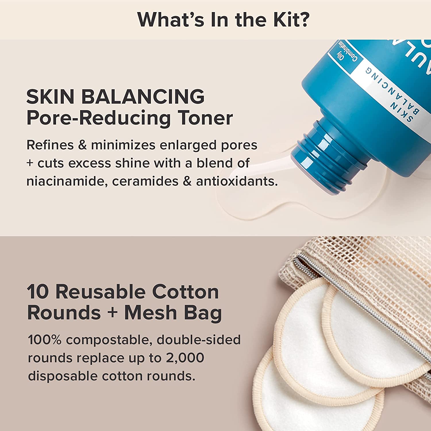 SUSTAINABLE SKIN CARE: Take exceptional care of your skin & the planet with this eco-friendly set. It includes the SKIN BALANCING Pore-Reducing Toner & our exclusive Reusable Cotton Rounds to give you a flawless application again & again.