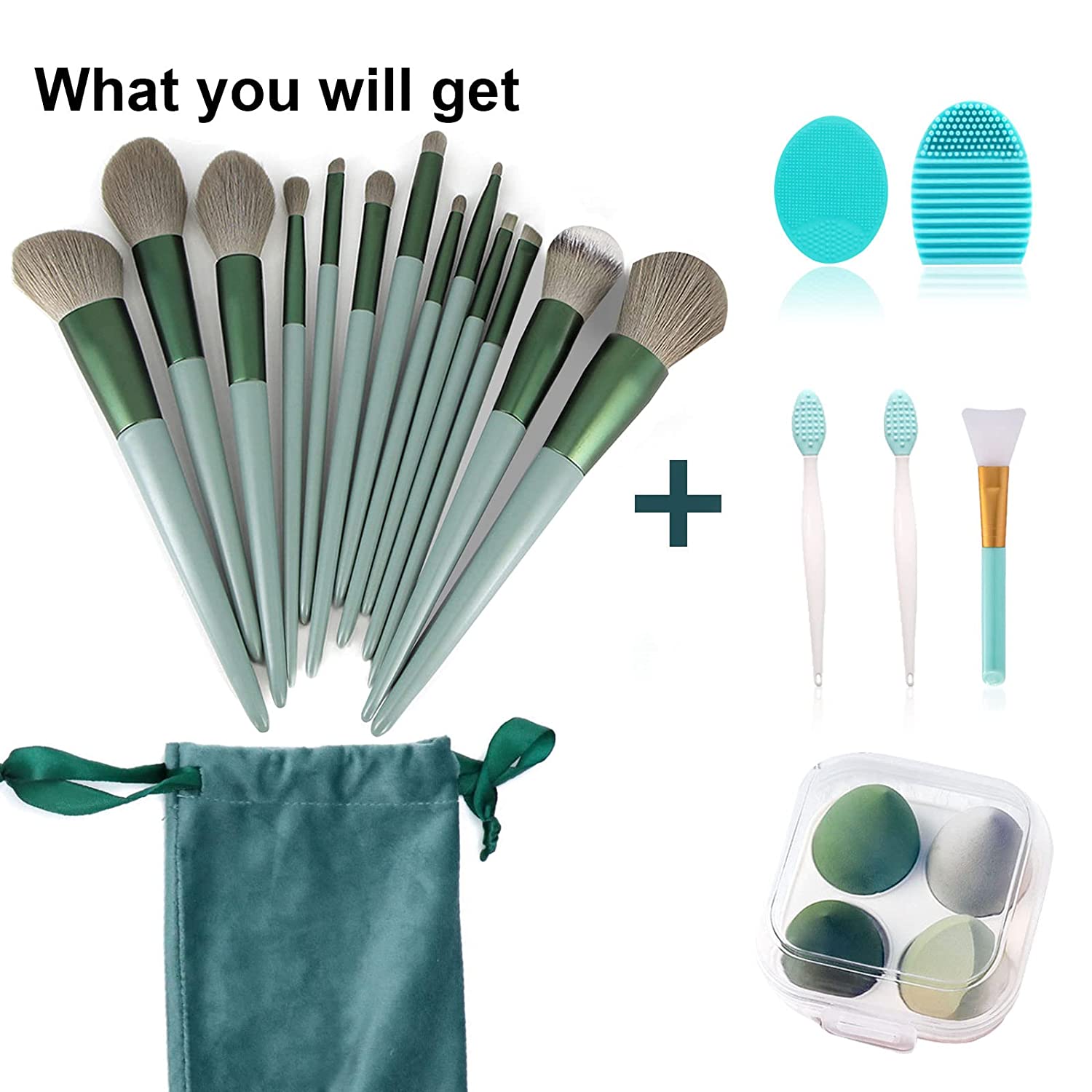 Comprehensive Makeup Brush Set : This set includes 13 makeup brushes and a storage bag. In addition, we also prepare a silicone face-pack brush, a sponge egg set, and two silicone lip brush, a brush cleaning egg, and a silicone facial cleansing brush. This set is a good choice for beauty lovers.